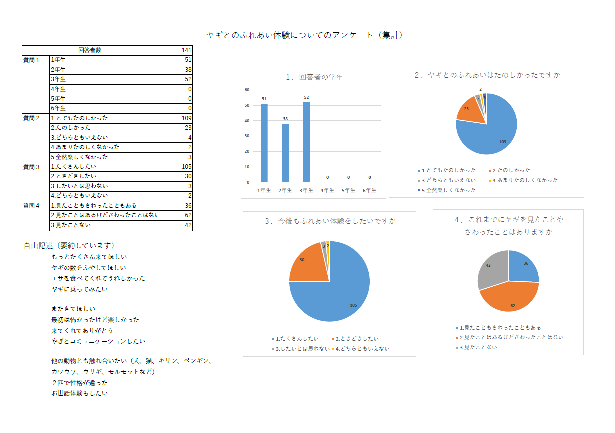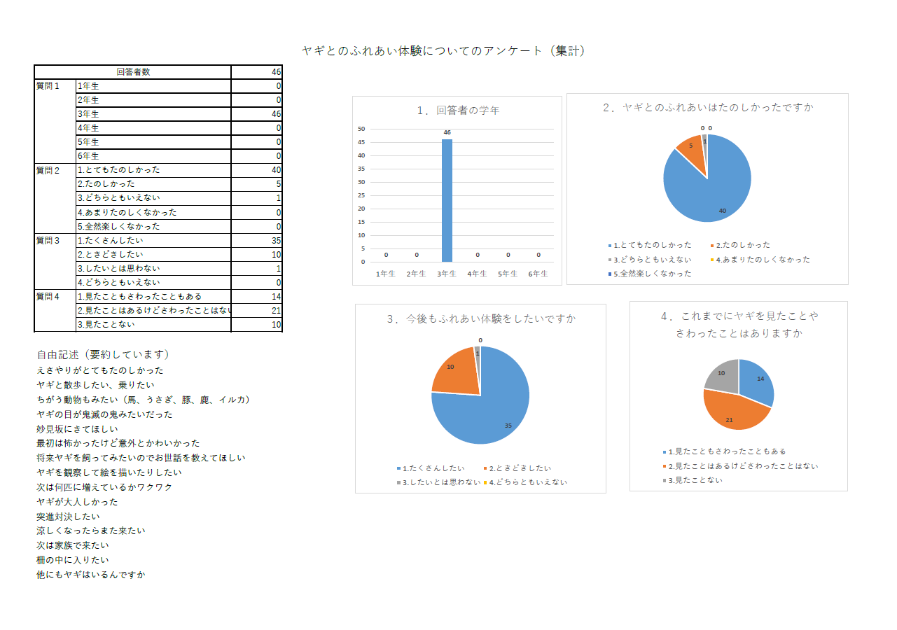 お越しいただいた児童のみなさんにアンケートをとりましたので、回答の集計を掲載いたします。