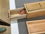 実際に”かんな”を使ってかつお節の削り体験をし、自分で削ったかつお節をご飯にのせて試食しました。