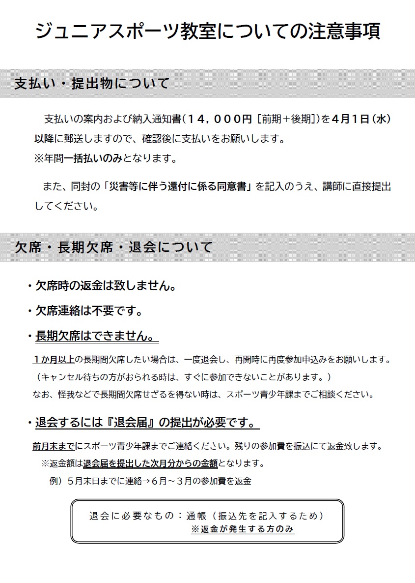 ◆ 一年を通しての申し込みのため、支払いは一括となります。(途中退会の場合は残りの受講料を返金いたします)