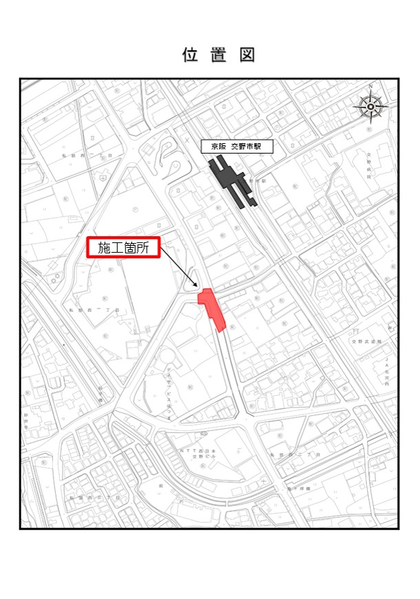 私部西線・私部青山線(交野市私部西2丁目地内)の交差点改良工事を下記日程で行います。