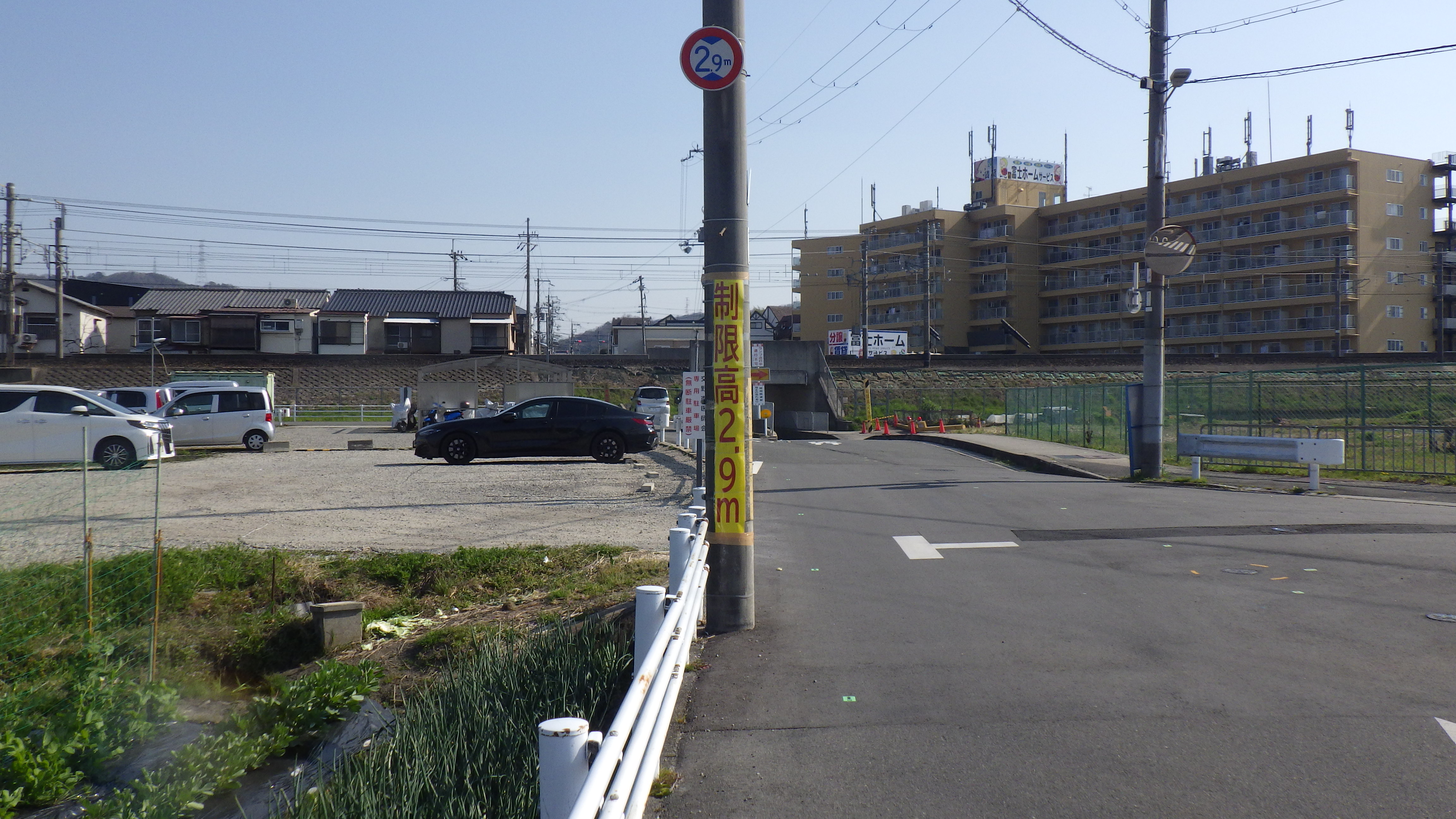 現在、通行可能ですが、2.9mの高さ表示バーがないため、自車の高さを確認の上ご通行ください。