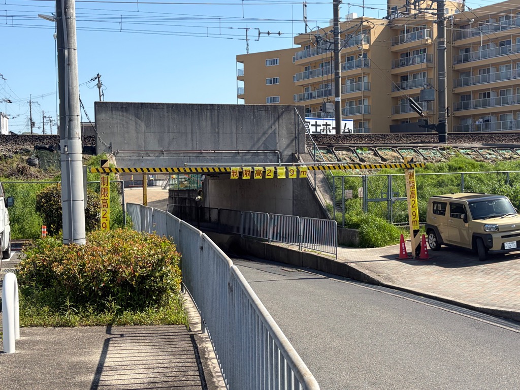 当該アンダーパス通行の皆様は、通行時間帯にご配慮いただけましたら幸いです。本復旧までの間は、JRの鉄道構造物に接触しますと多大な損害賠償が生じるため、自車の高さを確認の上ご通行くださいますようお願いいたします。