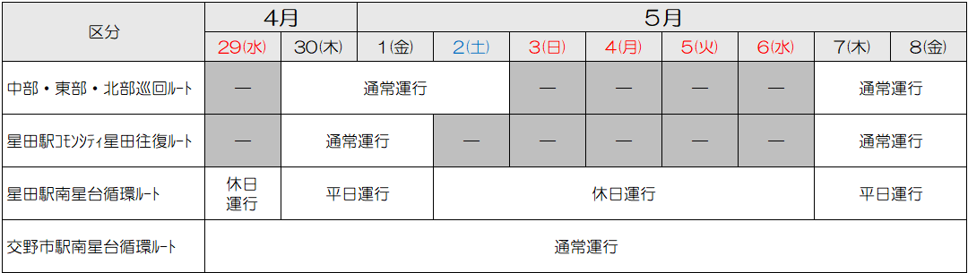 【おりひめバス】GW期間は暦通り運行します
